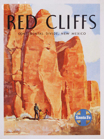 Early Santa Fe Poster Featuring Native Americans and the Land.